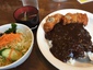 3.野菜ラーメンの野菜をご飯の上にのせます。