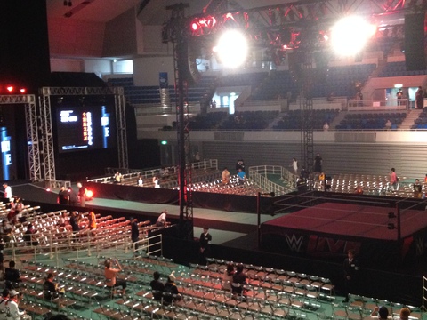 リングの周りのアリーナ席は高価ですが、試合を最も間近で見ることができフォールも確認できます。またスターによっては近づいてきてくれるのでタッチも可能な場合があります。欠点は反対側の場外が見えないことくらいです。
