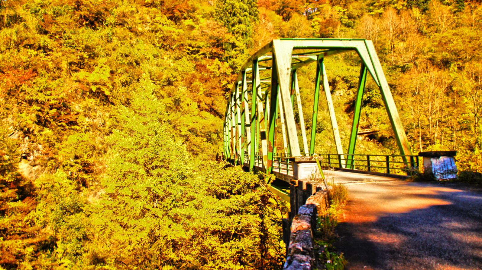 橋は吸い込まれるように山の中へ渡っています。渓谷の風景はしばらく見納めです。