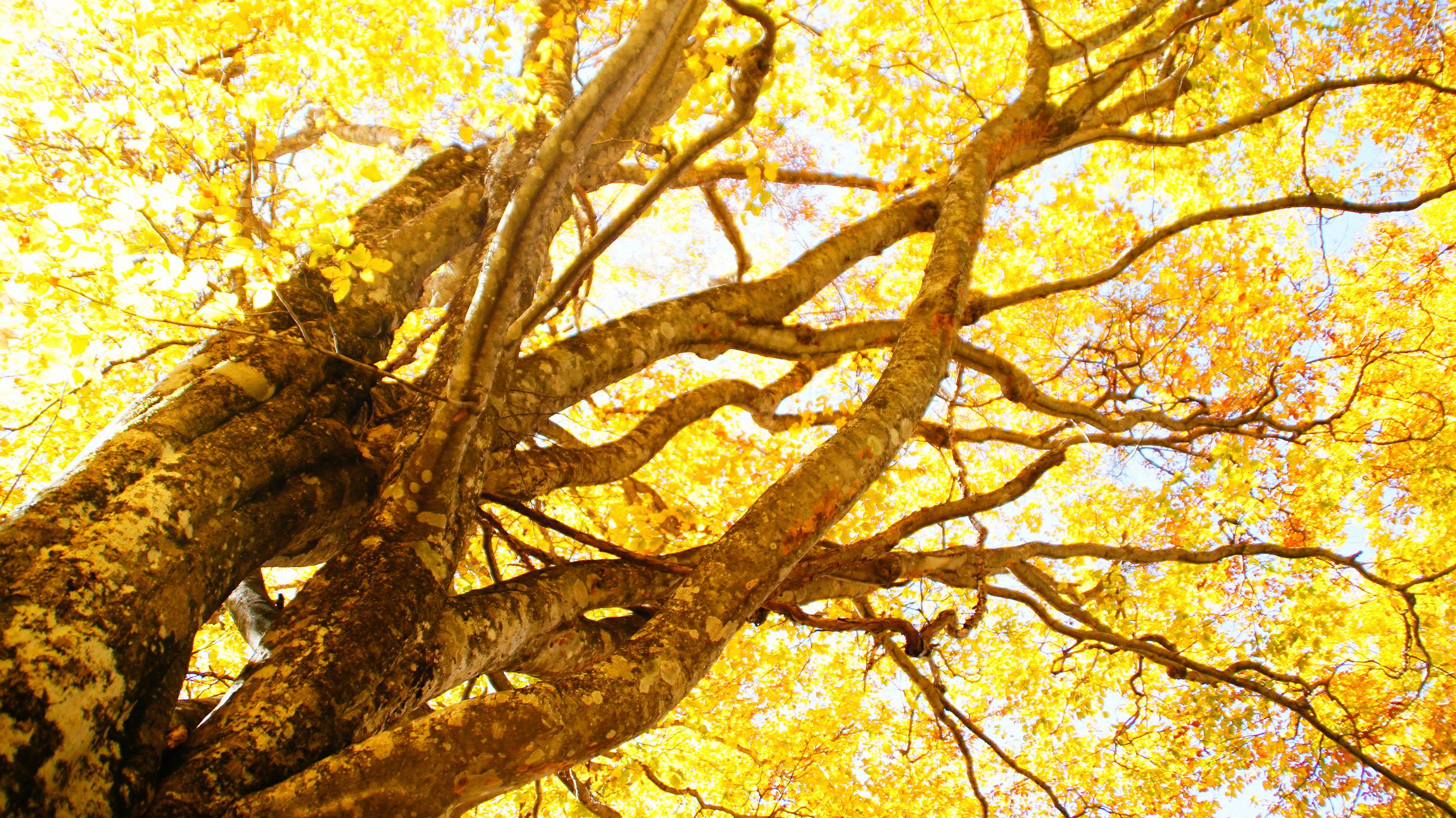 やがて石段は終わり、平坦な台地になります。丁度先ほど見た願教寺山の平たい部分です。ブナの美しい光景が目の前に広がります。多少アップダウンはありますが気持ちのいい山歩きです。