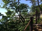 遊歩道は苔むしたベンチと折れた柵が並びます。反対側の駐車場からはあまりここまで来る人はいないのでしょう。