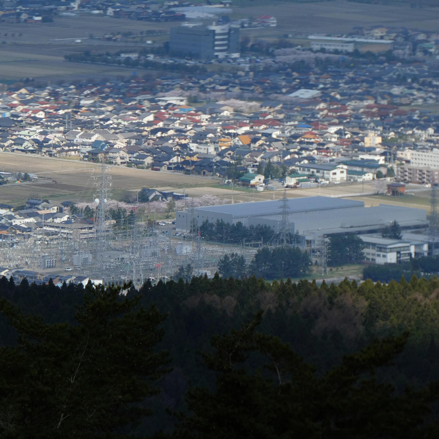 大黒部幹線74番鉄塔結界下より。加賀平野がよく見えます。真ん中のは手取川ですね。
