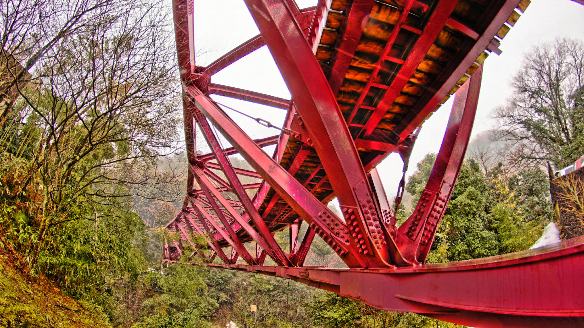 鉄骨の現代風の橋ですが、その形はまるでジェットコースターの様。鶴仙渓といえば風情のあるこおろぎ橋が有名ですが、見た目のインパクトでは、このあやとりばしの方に歩がありそうです。