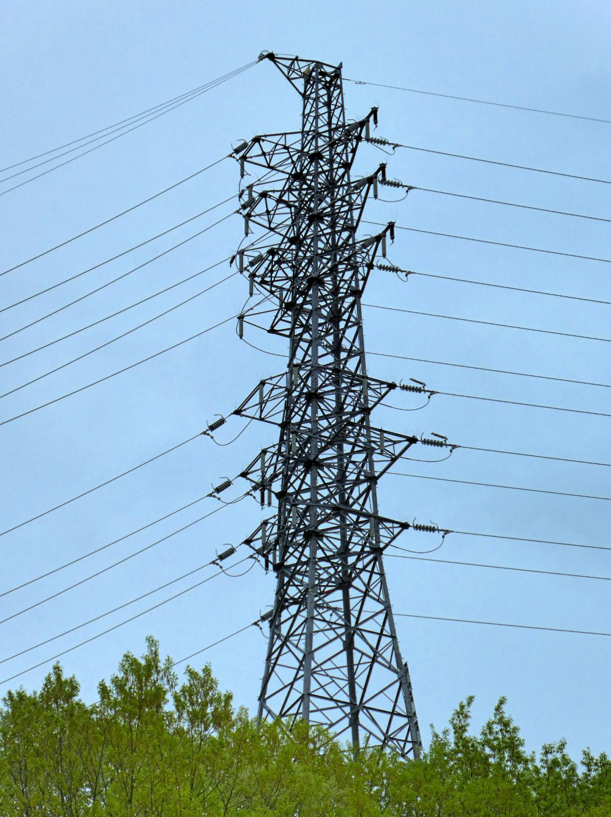 ラッキーなことに西側2つは辛うじて外側から確認できました。新武生丹生線と北庄丹生線、どちらも154kVで、冒頭の接続図でいう北庄変電所と新武生変電所の線の間の線になります。ということは西側が154kVブロックということですね。