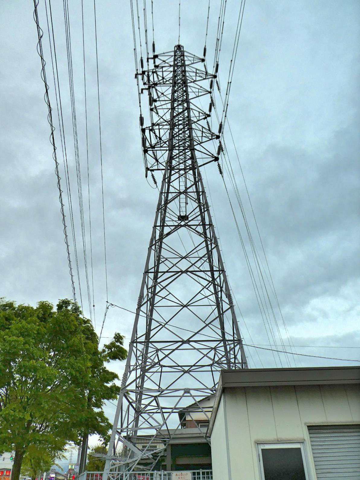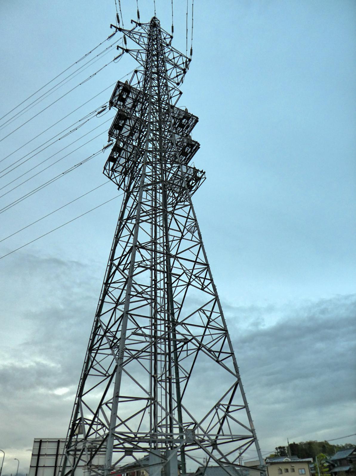 4回線は併架で国道8号を北上していきます。すぐにあるのが水落線の最終?鉄塔。